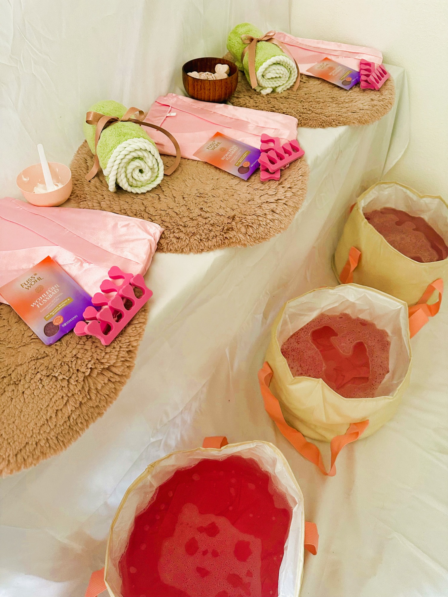 - Pediküre-Sets (Handtuch, Badeperlen, Zehentrenner)